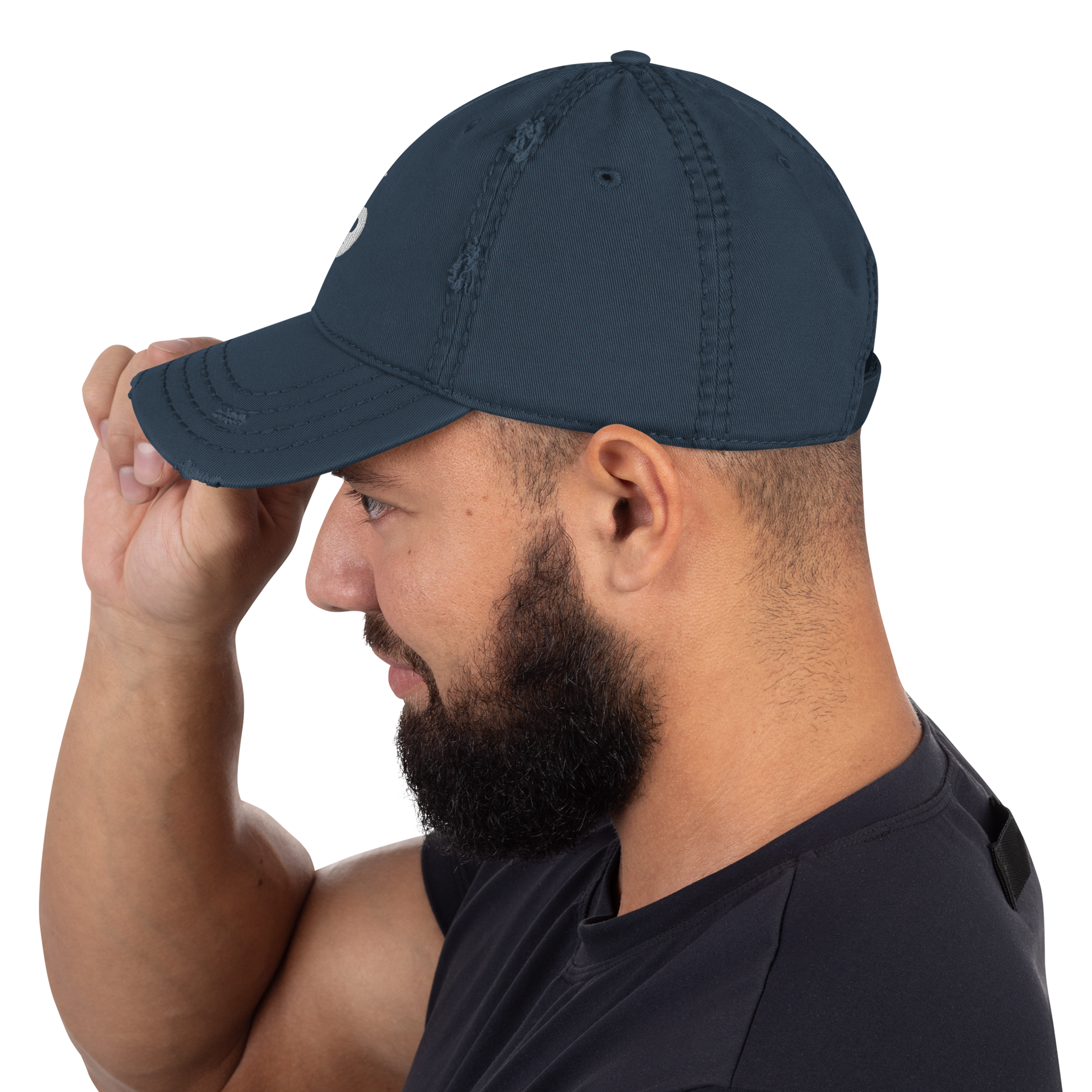 Expand your headwear collection with this fashionable dad hat. With a slightly distressed brim and crown fabric, it’ll add just the right amount of edge to your look. For a quick and easy outfit pair it with slacks, your favorite jeans, and a sports tee.